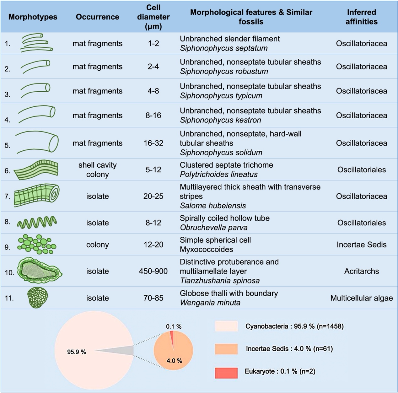2. 硅质结核中微生物化石多样性及其生态学意义